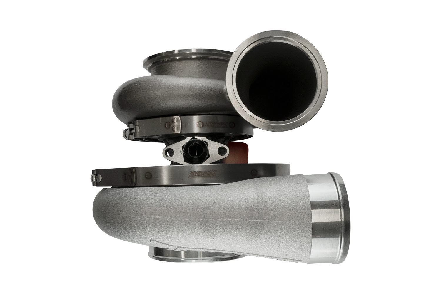 Features Unparalleled transient response Aggressive aerodynamics with 7+7 splitter wheels Lightweight 310s stainless steel investment cast turbine housings Lightweight, Aluminium compressor covers CFD driven designed housings for optimal A/Rs and flow T14 Inconel turbine wheel for extreme EGT's VSR speed balanced Proprietary dual ceramic bearing system Integrated Iron backplate on center housing
